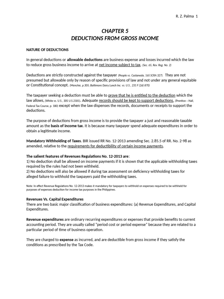 Deductions From Gross Income Sec 65 Rev Reg No 2 Pdf Tax Deduction Gross Income